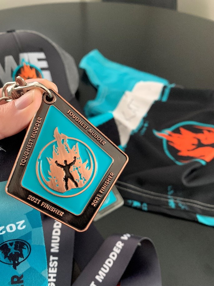 Since the big sign up, my training has gone into full swing and I hit the mud for my first 2021 Tough Mudder Endurance series event– Toughest Mudder West in Seattle. And guess what happened? I made it to the PODIUM for my age group! I proudly limped my way up, hobbled onto the podium, and accepted my bronze medal after a night covering 35 miles. It was such an incredible and rewarding feeling to stand on that podium in front of my friends and family, including my eight year old son – who proudly watched his mama accept her medal.